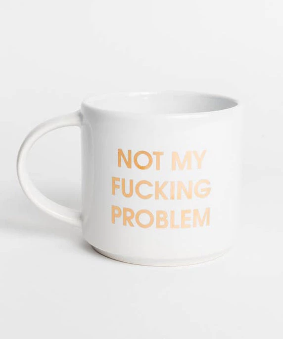 This “Not My Fucking Problem” coffee mug has a gold foil imprint and is perfect for your coffee, tea or wine.