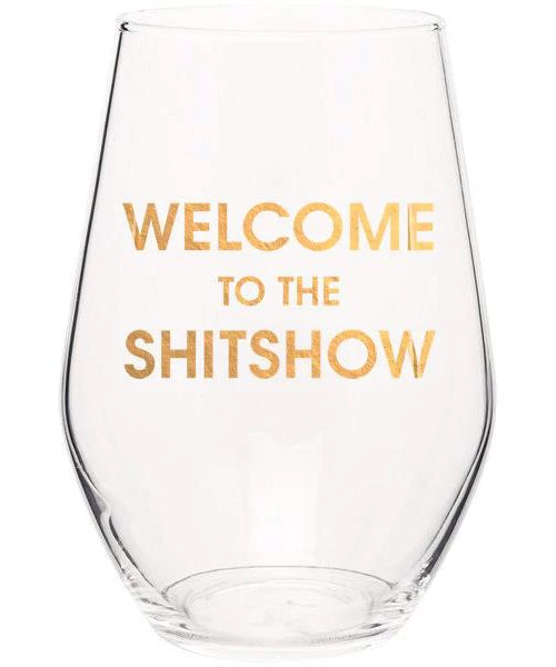 Crush your wine in style with our “Welcome to the Shitshow” gold foil stemless wine glass. Wine glasses are printed in Los Angeles.