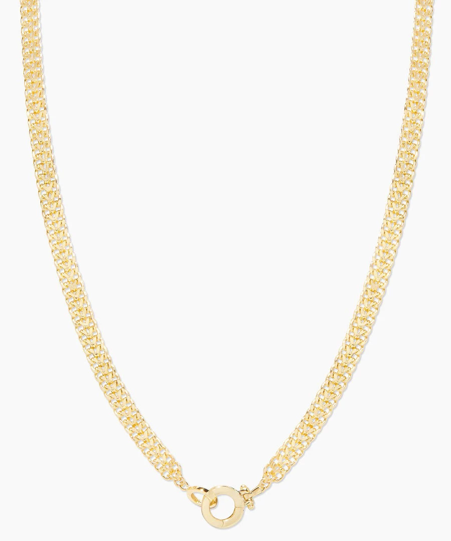 Name of the game – versatility. This next-level woven chain is perfect on its own, or statement-ready when mixed with your favorite layers. A uniquely designed hinge closure allows you to wear the clasp in the front or the back!