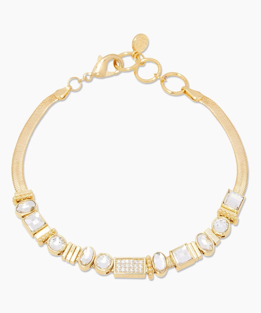 The best-selling Venice Gem Necklace with a holiday twist. A unique assortment of shimmering shapes and stones makes this sleek herringbone chain shine bright.