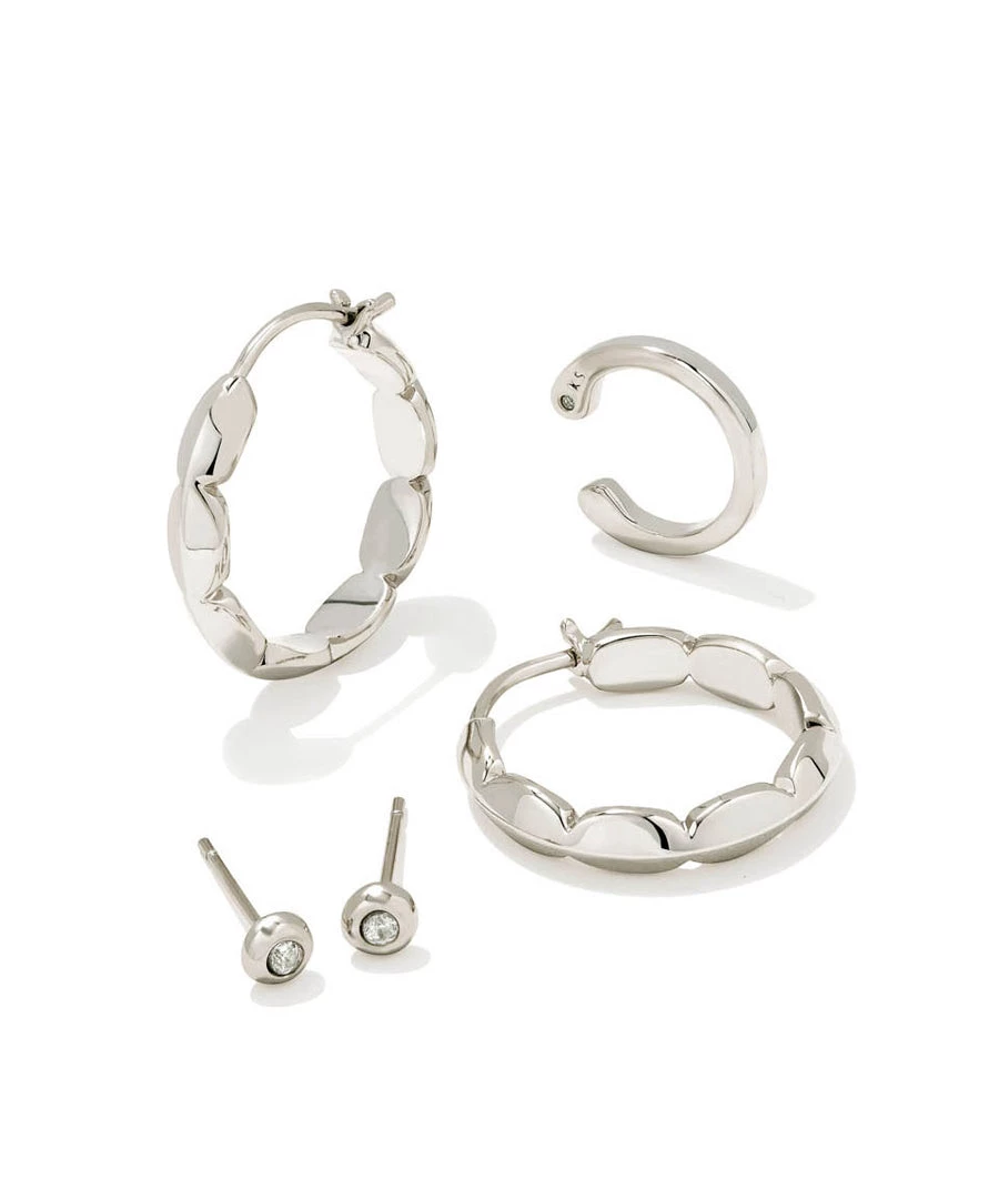 Mix and match your curated ear stack however you like with the Brooke Huggie & Stud Set. Including a pair of huggies, studs, and an ear cuff, you can wear altogether or along with other favorites.