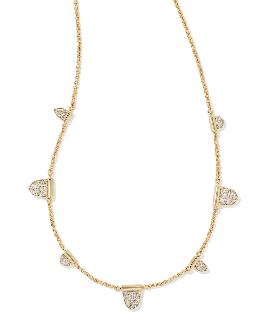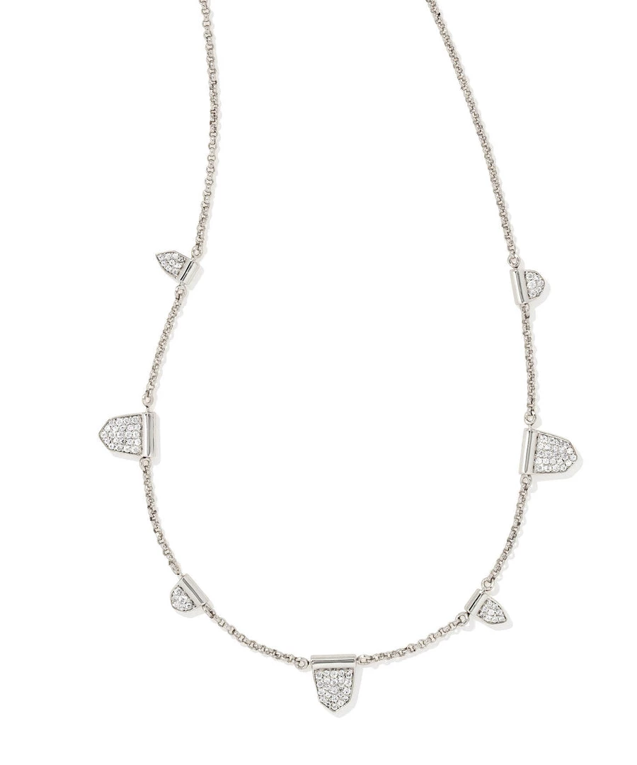 Shapely stations filled with cubic zirconia pavé are beacons of light on slim necklace.