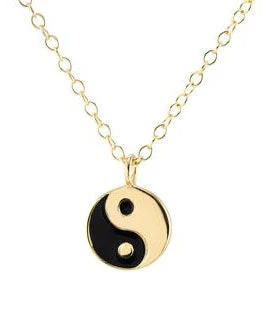 Charm measures approximately 0.75 inches diameter, cast in sterling silver and plated with 18K gold vermeil with black enamel. Gold-filled chain. Adjustable length 16 to 18 inches.