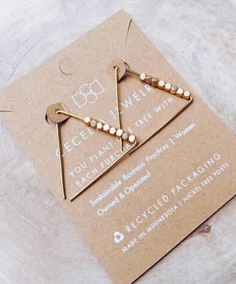 Our Gold Geometric Earring Collection is handmade in Minnesota. You plant one tree with each purchase. These timeless earrings are handmade with 12k gold filled wire and gold plated beads.