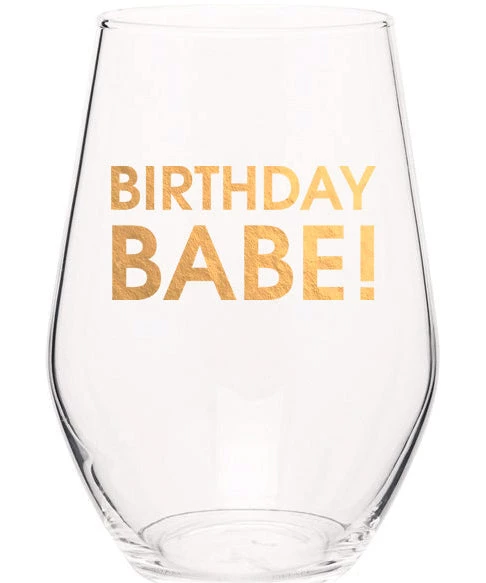 Crush your wine in style with our “Birthday Babe” gold foil 19ox stemless wine glass. Wine glasses are printed in Los Angeles.