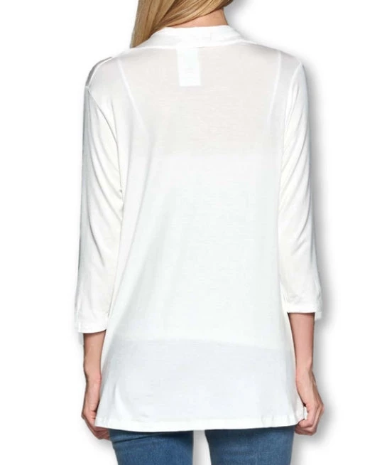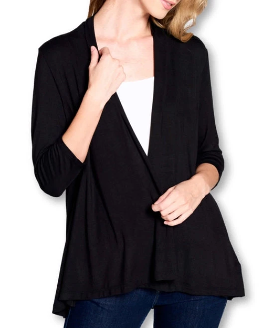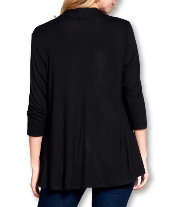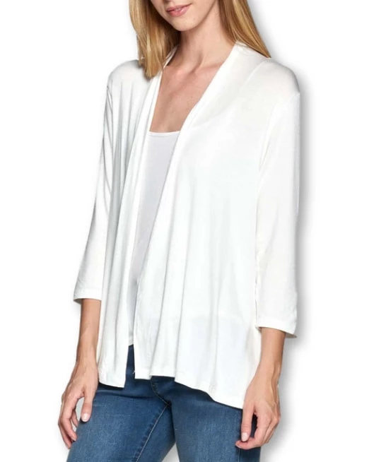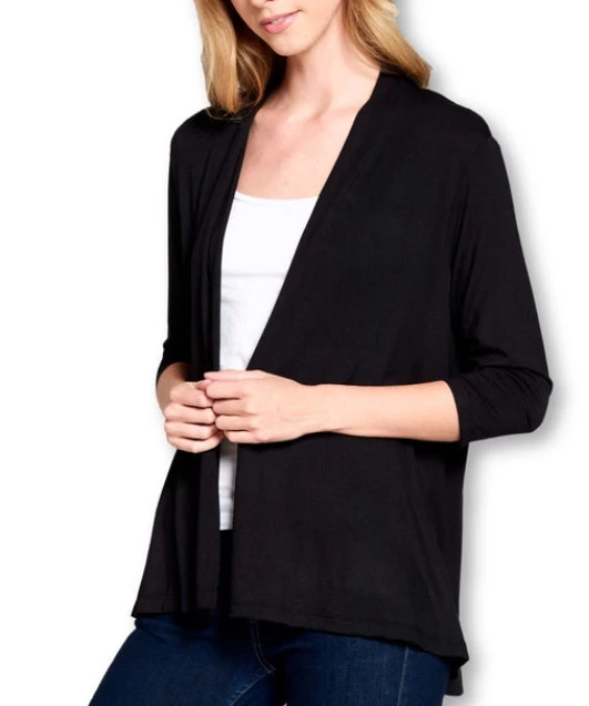 This soft and comfy open front cardigan features 3/4 sleeves and an easy fit. A must to throw on over everything from t-shirts to dresses. The perfect wardrobe staple.