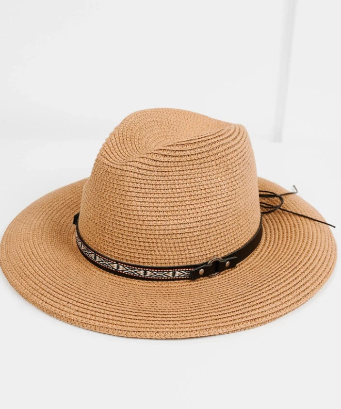The Carolina Packable Sun Hat is a fun and easy to bring style sun hat with a thin patterned band. This fun summer hat is giving us all the excitement for warmer weather, beaches and sundresses.