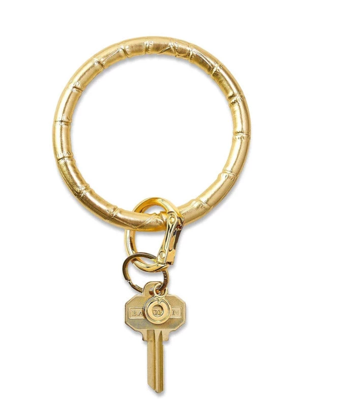 Fabulously dazzling yet surprisingly neutral, this metallic leather is durable, seasonless, and promise to play nice with your signature stack of bracelets. The Original Big O® Key Ring is a one-size-fits-all bracelet key ring that can be worn on your forearm or above your elbow for hands-free ease. The patented, signature locking clasp clicks open and closed so you can contain your house keys, car keys, card case and more in one central, secure location.