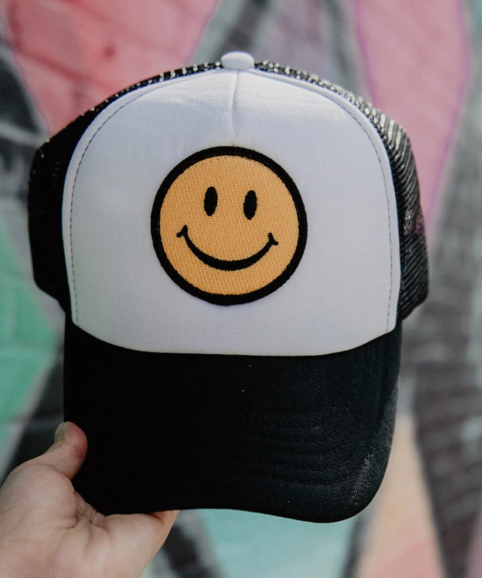 Brighten your day with this darling smiley face hat! Such a cute accessory.