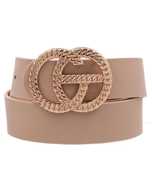 A classic belt updated with a fun chain twist belt buckle. An accessory must have!