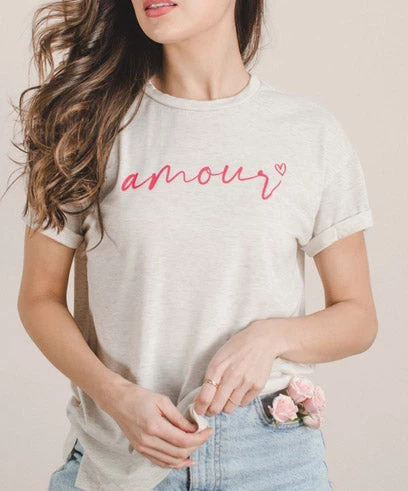 This soft graphic tee features a fun saying on the front, amour! A must for Valentine’s Day and beyond. So cute!