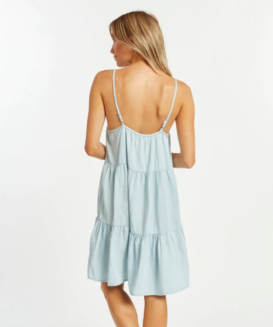 The cutest denim dress that is soft and comfy. Featuring a loose fit and a tiered body, this dress is a go to favorite to wear all summer long.