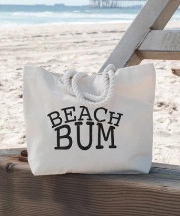 Cutest beach tote bag featuring durable canvas and rope handles.