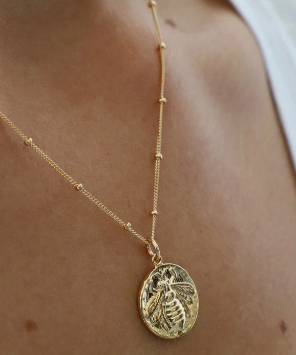 Medallion necklaces are one of our favorite looks. This vintage bee medallion pairs perfectly with other gold chains for a look that won’t go out of style.