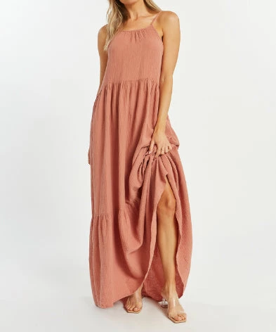 This stand out maxi dress features a tiered body and spaghetti straps. Soft, comfy and easy to style, this dress is effortlessly chic!