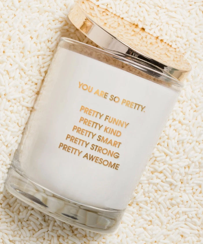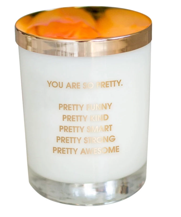 This “You Are So Pretty. Pretty Funny. Pretty Kind. Pretty Smart. Pretty Strong. Pretty Awesome” candle is a refreshing Blood Orange and Grapefruit scent. This candle goes from Burnin’ to Boozin’. The candle vessel becomes a rocks glass when 60 hour burn time is complete.