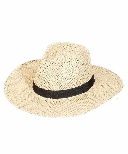 The perfect spring and summer accessory. This classic straw hat in ivory features a black band. Goes with dresses, tees, shorts – it’s the perfect finishing touch with any outfit.