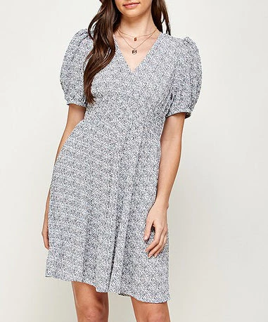 This sweet and romantic dress features puff sleeves, a v-neckline, smocked waist and a dainty floral print. Easily dress up with heels or wear during the day with sneakers or sandals.