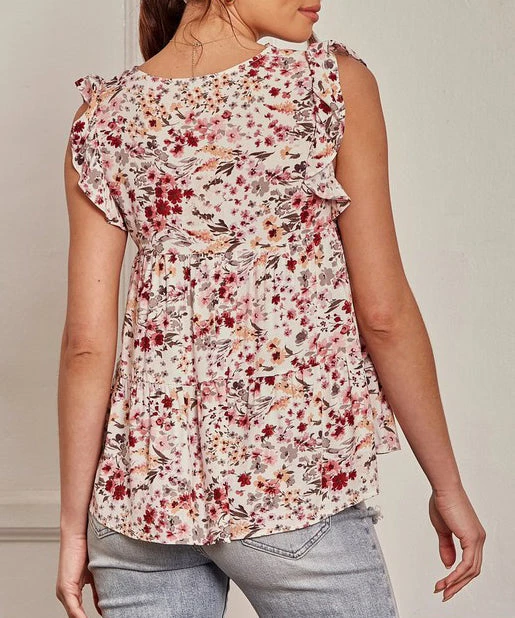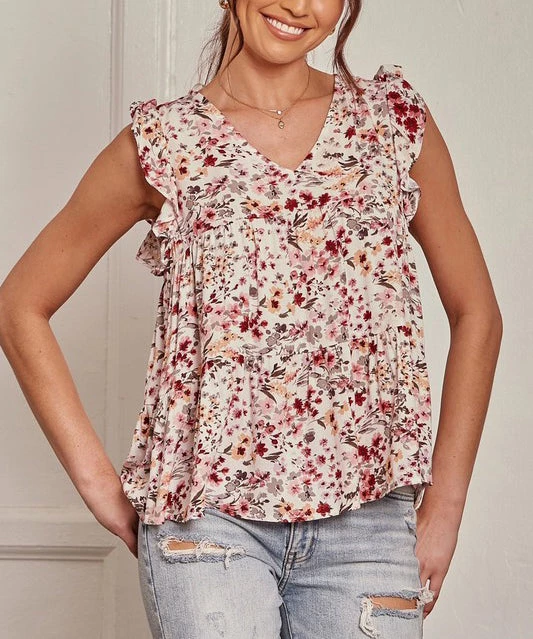 This pretty floral top features flutter sleeves, a v-neckline and a flowy fit. Easy to style for work or play.