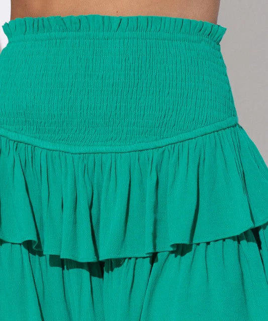 This ruffle skirt features smocking details and shorts under the skirt. A go-to style that looks so cute dressed up or down. Comfy and so chic!