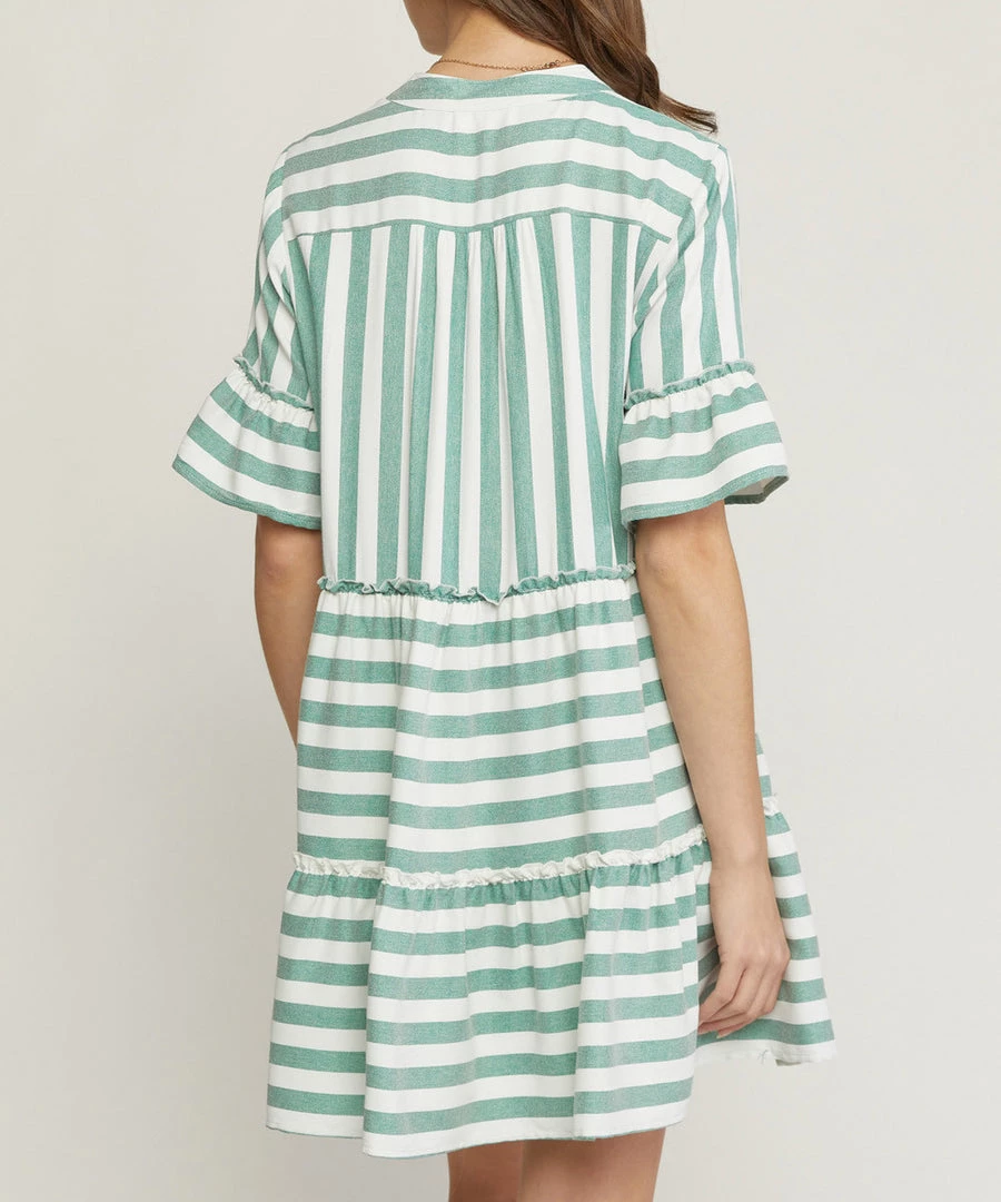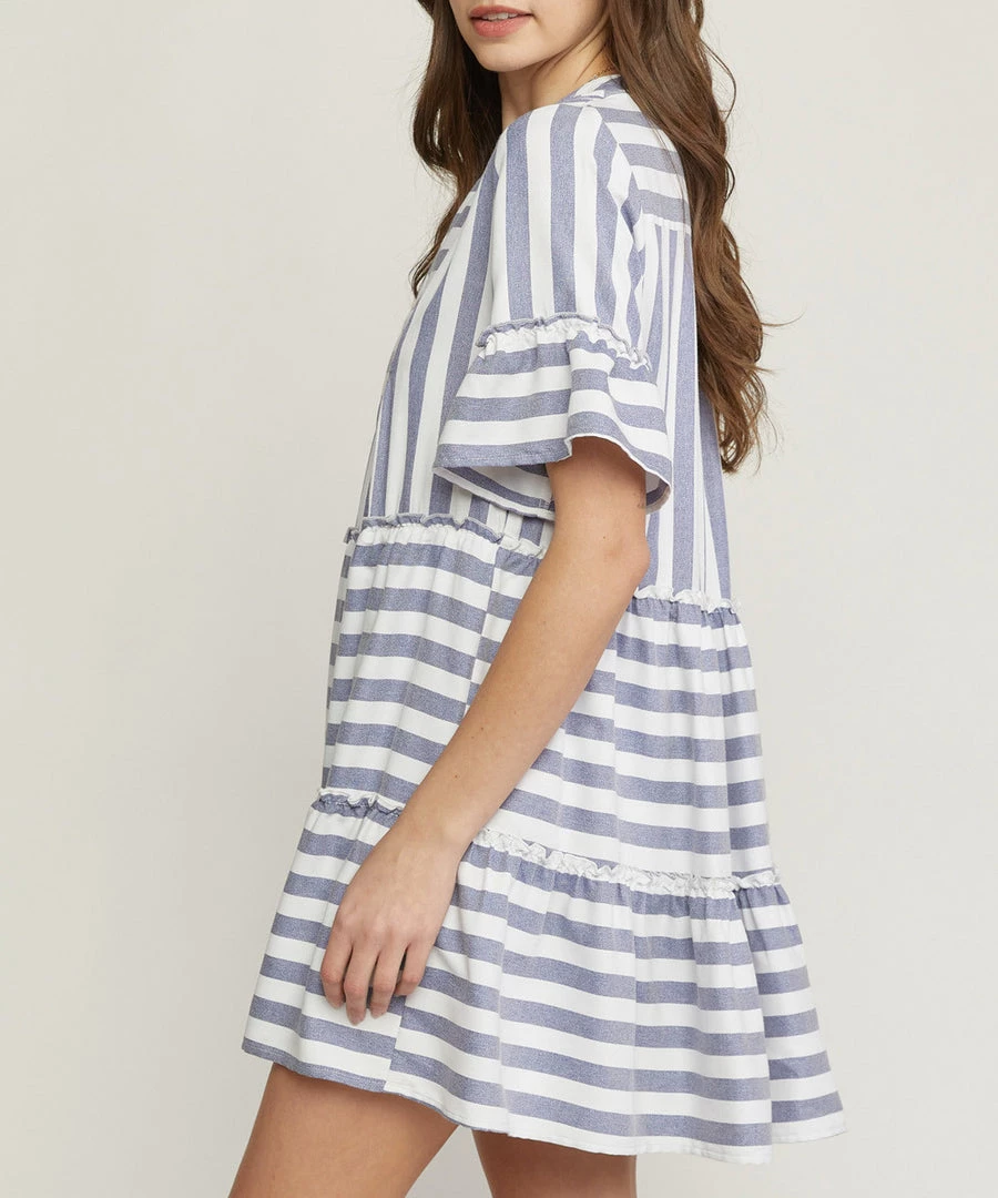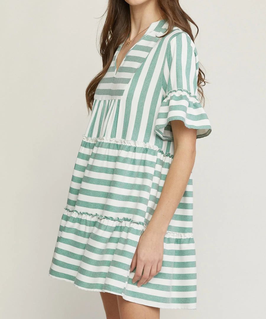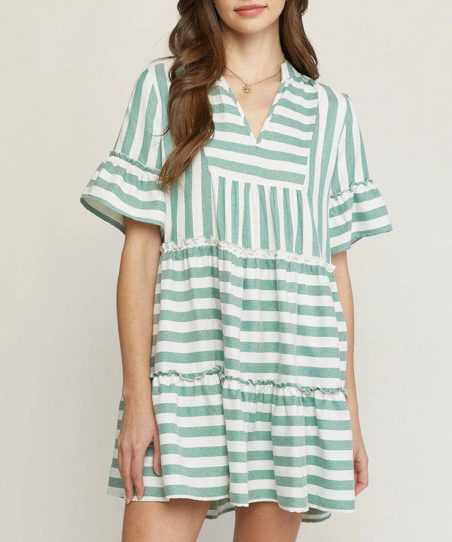 This easy v-neck dress features a comfortable silhouette and short sleeves. A go to pick for summer that can be worn with everything from sandals to sneakers to wedges.