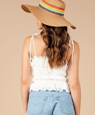 Cutest cami top featuring a textured body with fabric tie straps. So cute to wear alone or to layer with under a jacket or sweater.