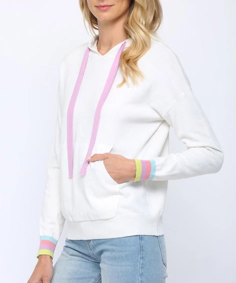 Soft and comfy, this hoodie is the perfect casual piece to wear year round. Featuring a contrast stripe detail on the sleeves and back, this will be a go to for casual days.