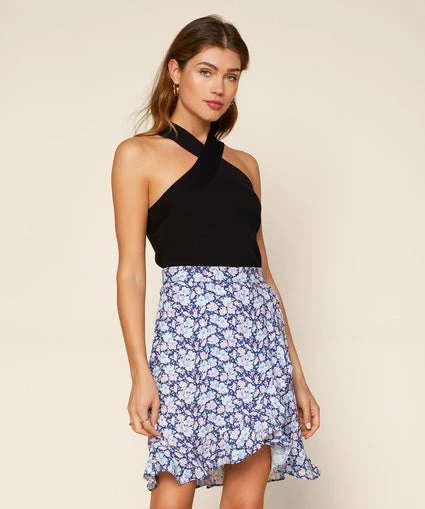 This gorgeous sweater top features a criss cross halter neckline. So cute worn alone or layered.