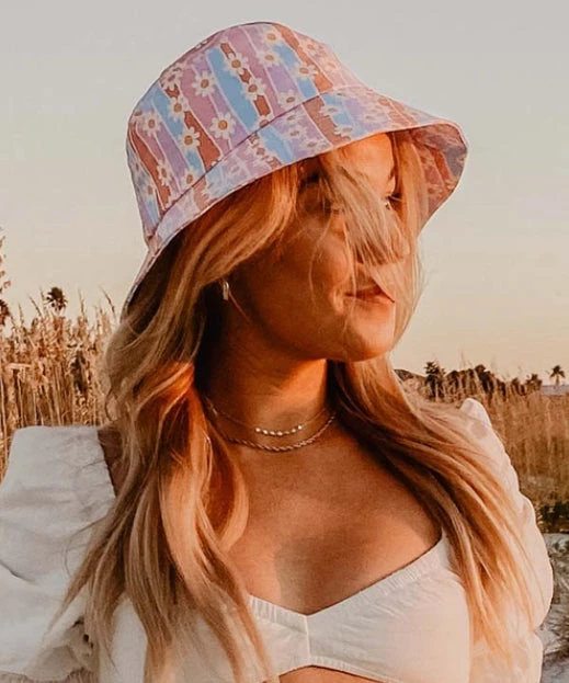 Cutest bucket hat done in a fun daisy print. The season’s must have accessory!