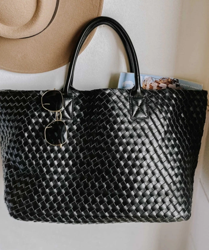 This gorgeous woven bag is handwoven with premium vegan material. The Drew bag can be worn as a classic tote, or inner straps allow the tote bag to be made smaller. The bag includes a zipper pouch that can be removed to be worn as a lighter clutch. A staple bag that is a must for everyday use.