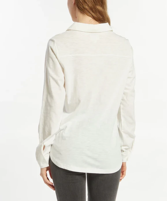 - Collared v-neckline