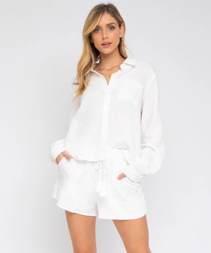 These ultra soft and comfortable gauze shorts are a summer must. Featuring a drawstring waist and an easy pull on style, these shorts are a must for casual days.
