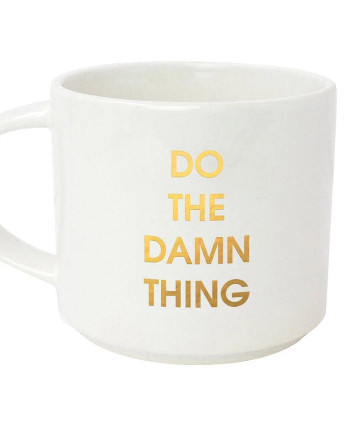 Get your day started right with the perfect work from home (or your office desk) morning mantra. Our “Do The Damn Thing” coffee mug has a gold foil imprint and is ideal for your coffee, tea or wine.