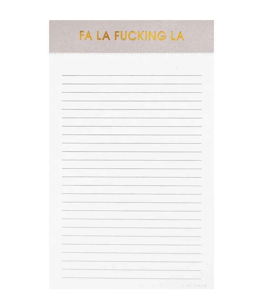 - 5×8 Notepad with Gold Foil Printed “Fa La Fucking La” Header
