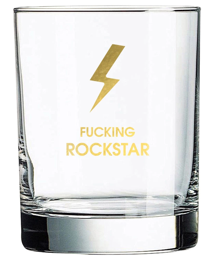 Gift for your that total “Fucking Rockstar” gold foil rocks glass. 13.25 oz. Rocks Glass, Gold Foil Printed in America Hand wash only.
