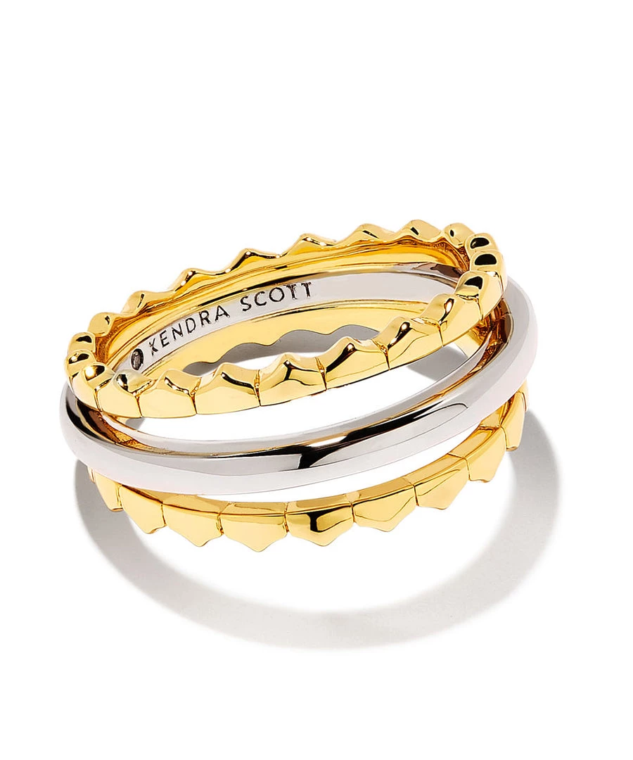 Get the stacked look in one step with the Quinn Triple Band Ring in Mixed Metal. Designed with subtle, metallic petals, it’s a charming addition to your growing collection of Kendra Scott favorites.