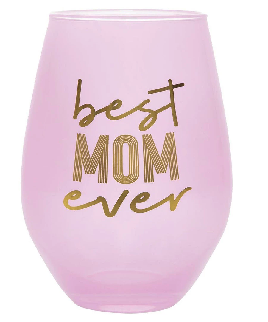 - Light pink glass with “Best Mom Ever” in gold lettering
