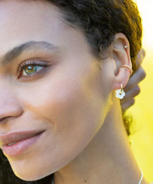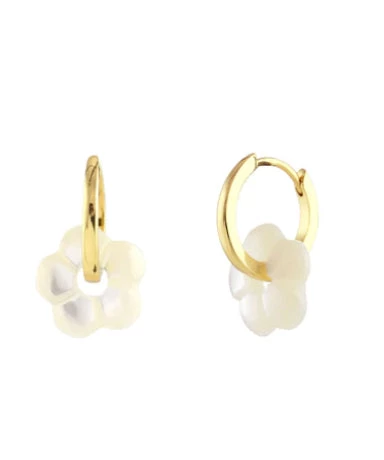 These beautiful mother of pearl flower huggies are the perfect earrings for everyday wear.