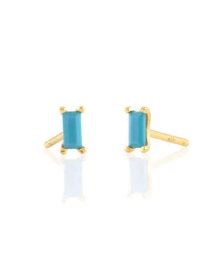Turquoise baguette studs measures 4 x 2mm. Available in 18K gold vermeil (sterling silver plated in 18K gold) or sterling silver.