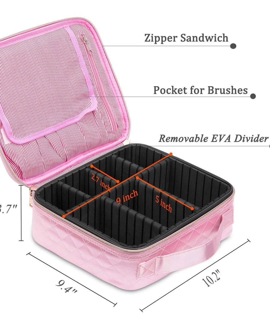 Do you hate clutter on bathroom counters? Do you also like to travel with every makeup essential tucks nicely away? This makeup case is for you! Not only does it help us OCD organizers, but it holds ALLL THE THINGS!!!