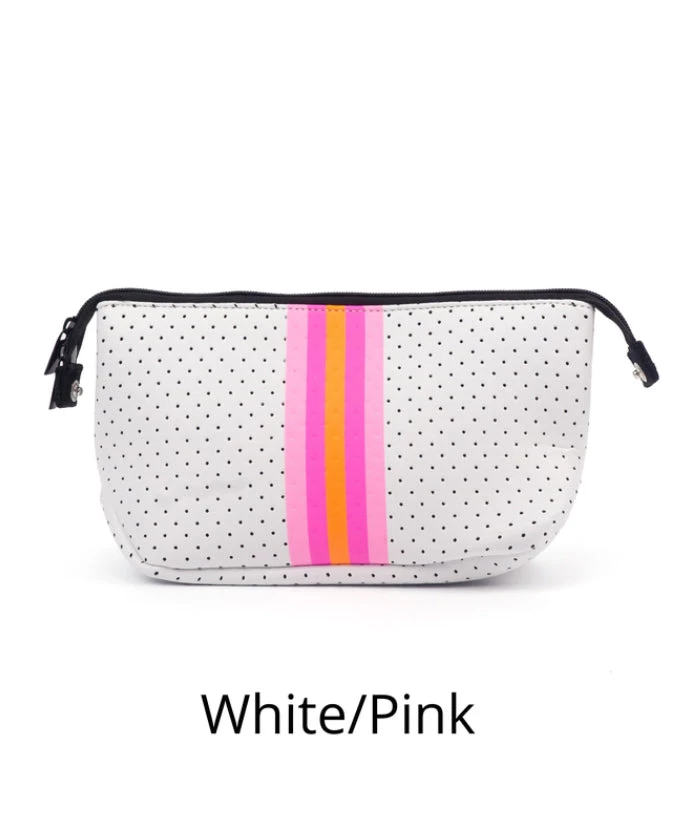 This Neoprene everyday bag is so eye catching with its fun designs and trendy stripe. It is the best neoprene bag for all your travels or everyday organization. With its zipper closure you can safely store everything from cosmetics to electronics. The adjustable sides snap to customize for you.