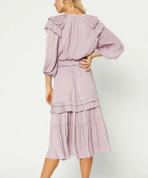 This gorgeous midi dress features long sleeves, a surplus body and pleated ruffle detail. The perfect dress to wear day or night, this dress is versatile, flattering and comfortable.