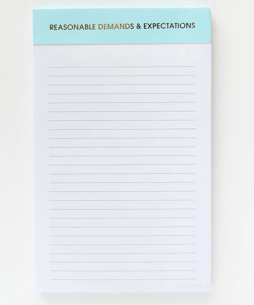 - 5×8 Notepad with Gold Foil Printed “Reasonable Demands and Expectations” Header