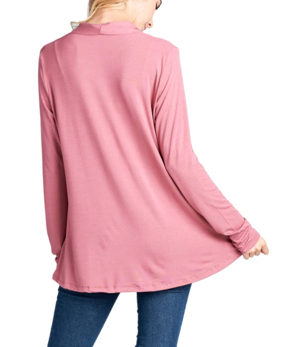 This soft and comfy open front cardigan features a classic fit with long sleeves. A must to throw on over everything from t-shirts to dresses. The perfect wardrobe staple.