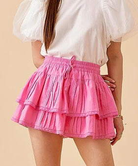 This darling flounce pintuck lace skort features the cutest feminine touches and lined shorts underneath. A summer must to dress up or down, this skirt is so cute.