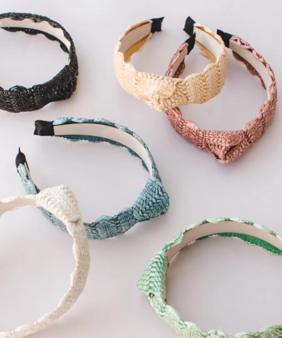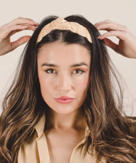 A fun raffia headband that is the perfect hair accessory to wear all summer long.