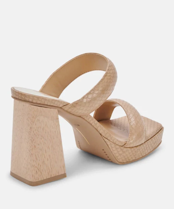 All about these textures. ATLAS features our favorite snake-embossed accents, contrasted with a woodgrain block heel for even more interest. The result is a cool juxtaposition of trending textures, inspired by nature.