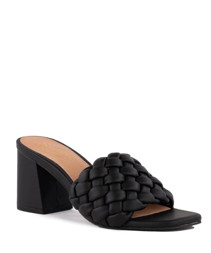 The perfect style for your next special occasion (or just because), Connoisseur is a single band slide sandal that is anything but basic. With a puffed woven upper, open toe design, monochromatic wrapped heel, and cushioned insoles, this chic heeled mule offers the best of versatility and comfort.