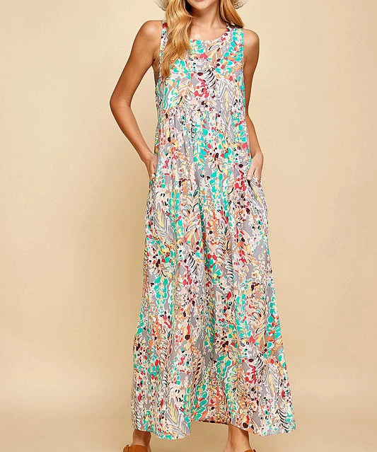This effortlessly chic maxi dress features a soft material, a fun print and pockets at the side. A must for warm weather days, this dress is the perfect casual go-to.