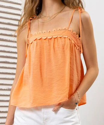 This pretty sleeveless top features a square neckline and lace trim detail. A must to wear alone or layer under a jacket, this top can be worn for work or play.